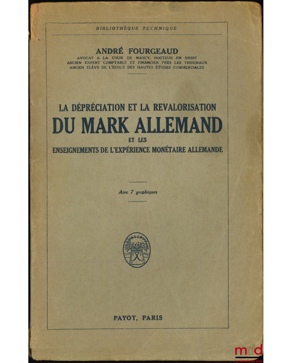 LA DÉPRÉCIATION ET LA REVALORISATION DU MARK ALLEMAND ET LES ENSEIGNEMENTS DE L’EXPÉRIENCE MONÉTAIRE ALLEMANDE, avec 7 graphiques, Bibl. technique