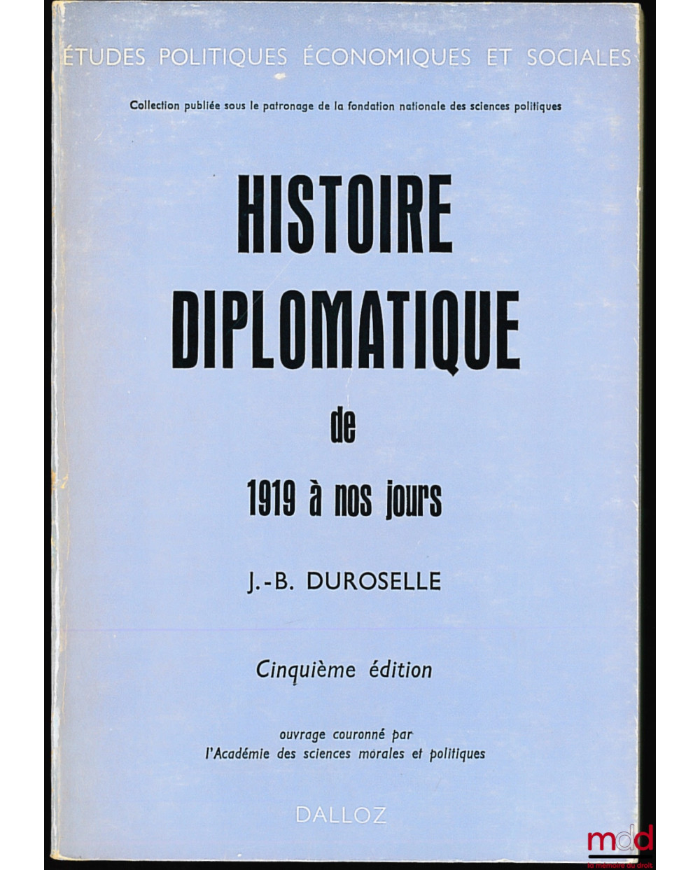 HISTOIRE DIPLOMATIQUE DE 1919 À NOS JOURS, 5ème éd. prolongée jusqu’à 1970, coll. Études politiques, économiques et sociales, publiée sous le patronage de la Fondation nationale des sciences politiques