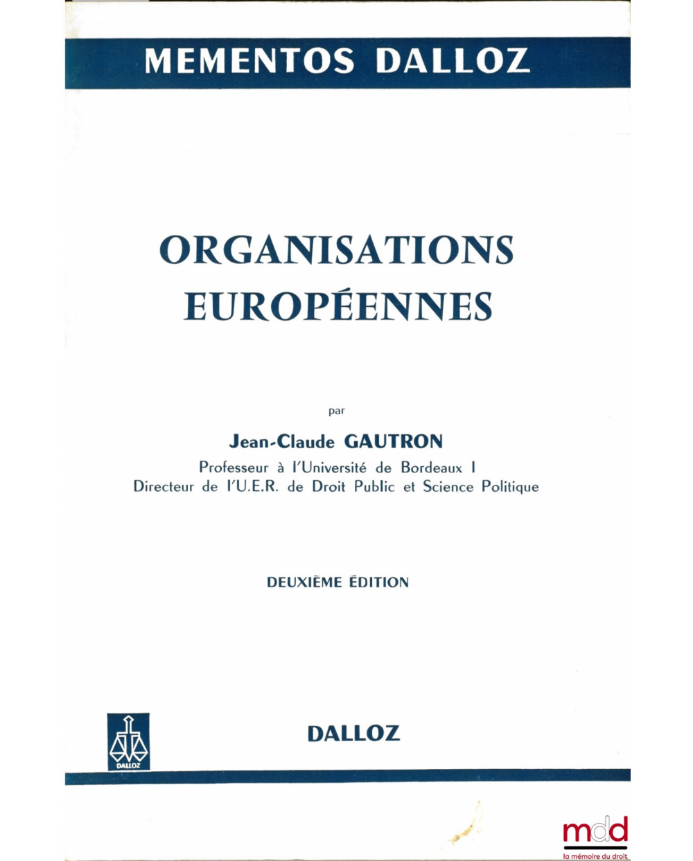 ORGANISATIONS EUROPÉENNES, 2ème éd., Mémentos Dalloz