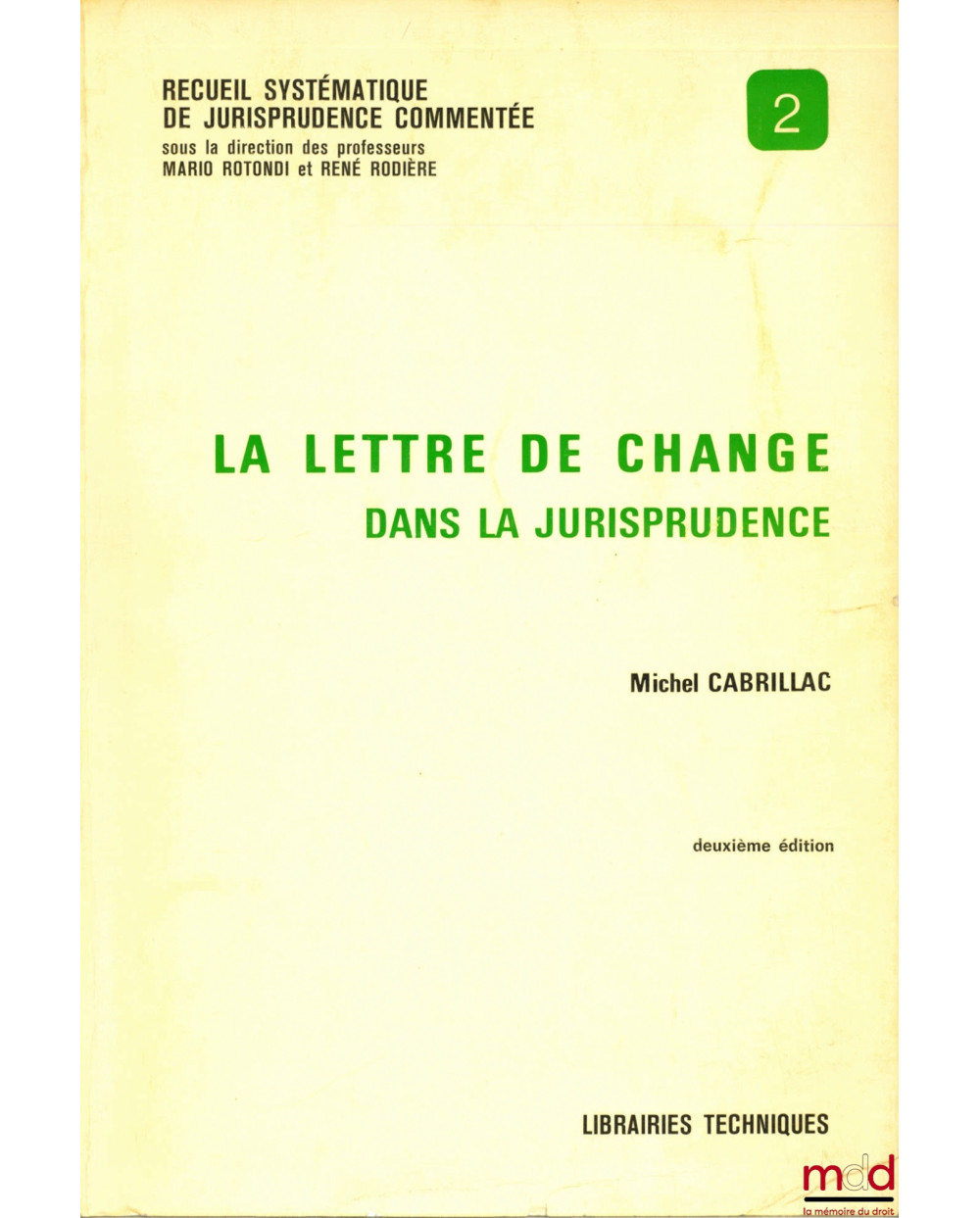 LA LETTRE DE CHANGE DANS LA JURISPRUDENCE, coll. Recueil systématique de jurisprudence commentée n° 2, 2e éd.