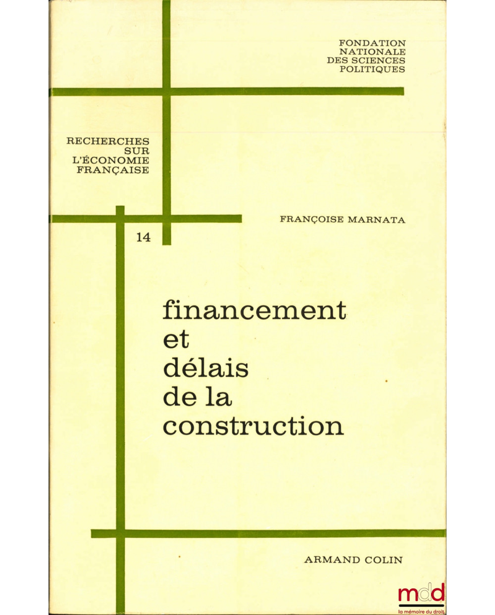 FINANCEMENT ET DÉLAIS DE LA CONSTRUCTION, Préface de Maurice Flamant, Travaux de la Fondation des Sciences politiques, Service d’étude de l’activité économique, Recherches sur l’économie française