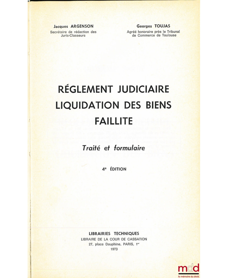 RÈGLEMENT JUDICIAIRE - LIQUIDATION DES BIENS - FAILLITE, Traité et formulaire, 4ème éd., t. II : Solutions du règlement judiciaire et de la liquidation des biens