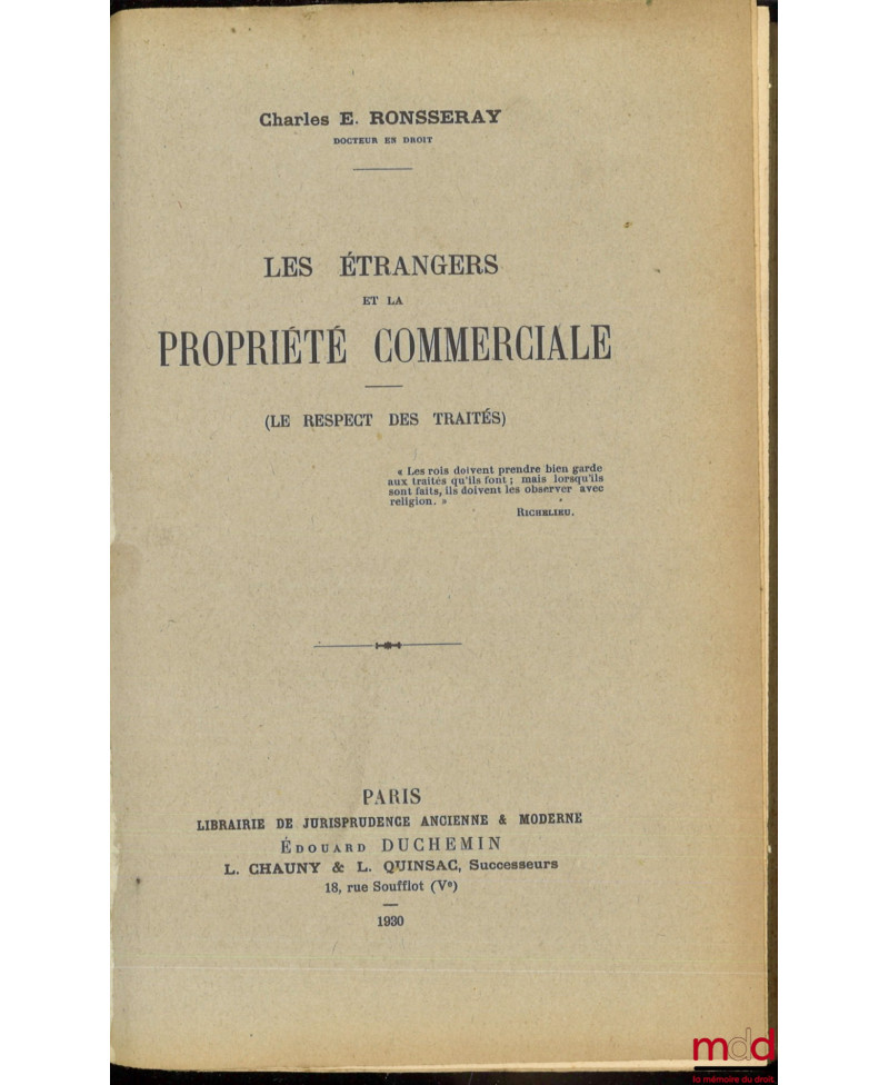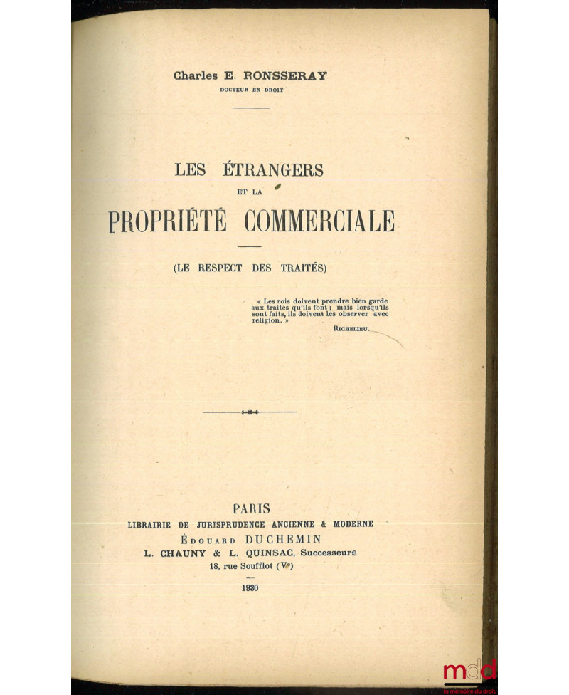 LES ÉTRANGERS ET LA PROPRIÉTÉ COMMERCIALE, (Le respect des traités)