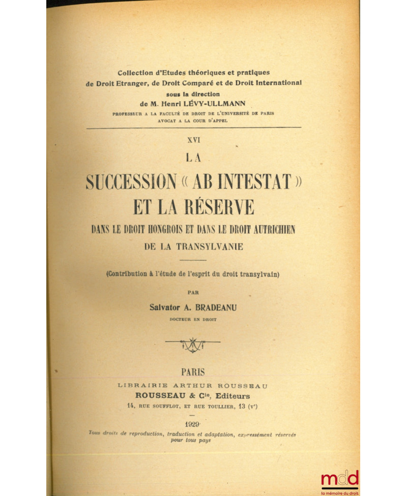 DE L’ACTION PAULIENNE envisagée sous le rapport DES LIBÉRALITÉS PAR CONTRAT DE MARIAGE, Thèse, Faculté de droit de l’Université de Paris,...