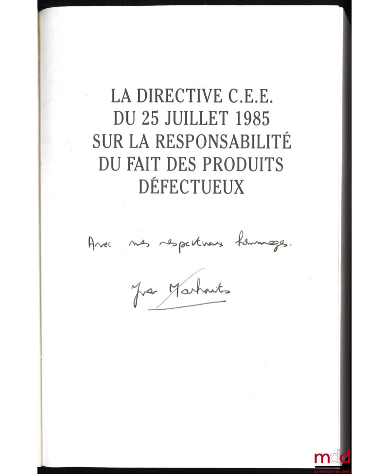 André Tunc écrit ceci dans sa note bibliographique : « On pouvait difficilement souhaiter étude plus profonde et plus claire en même temps. Le plan en est simple : il comporte deux parties respectivement consacrées à l’élaboration de la directive et à son contenu. Ne nous étonnons pas que l’élaboration de la directive occupe toute une partie. Celle-ci est indispensable à la compréhension du texte. Le droit américain ayant joué en la matière un rôle moteur, il fallait en effet présenter celui-ci dans son développement et souligner qu’avec des particularités bien connues, il n’en répondait pas moins à des besoins également ressentis en Europe. Il fallait aussi exposer la Convention de Stras bourg, œuvre plus ou moins mort-née, mais que l’auteur n’en regarde pas moins comme la source historique et technique de la directive. Il fallait encore, avant toute étude plus détaillée, examiner les fondements économiques, juridiques et sociaux de la directive, du point de vue notamment des autorités communautaires, et enfin la technique de la directive.La seconde partie de l’ouvrage, consacré au contenu de la directive, étonnera peut-être davantage le lecteur étranger peu familier des traditions françaises auxquelles tiennent à se soumettre les meilleurs des étudiants. Il pourra trouver étrange que deux titres successifs soient consacrés au régime juridique de l’action en responsabilité et à sa nature juridique. Il faut pourtant reconnaître que ce plan, pour intellectuel ou artistique qu’il puisse paraître, permet que soient examinées en profondeur et dans une clarté parfaite les questions les plus concrètes qu’ont eu à résoudre les auteurs de la directive et qui se poseront lors de son application : celles notamment qui naissent des notions de défaut, de mise en circulation, d’incorporation, ou de risque de développement ». (RDIC, n° 3/1990, p.1052 et s.).