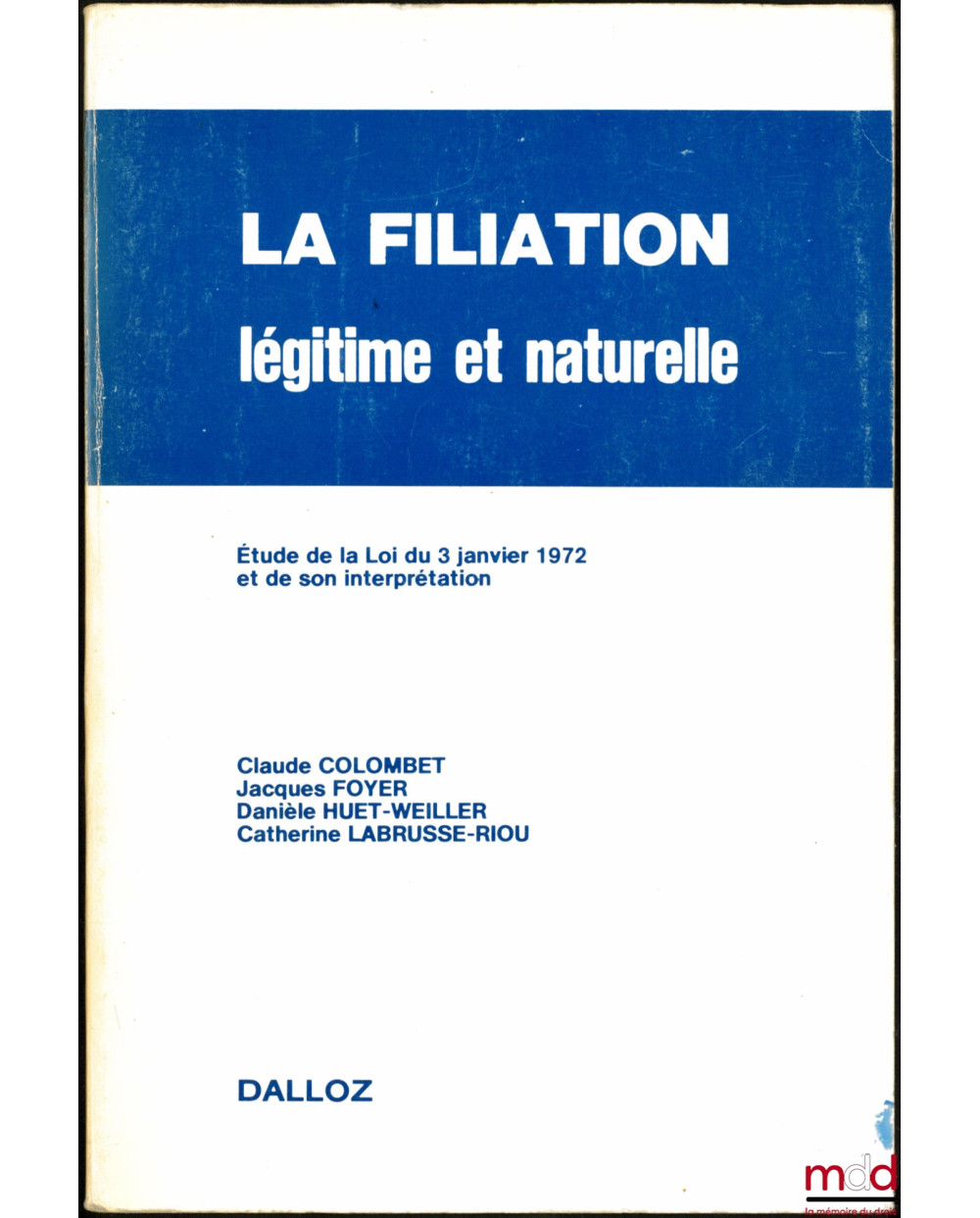 LA FILIATION LÉGITIME ET NATURELLE, Étude de la Loi du 3 janvier 1972 et de son interprétation, 2e éd. entièrement refondue