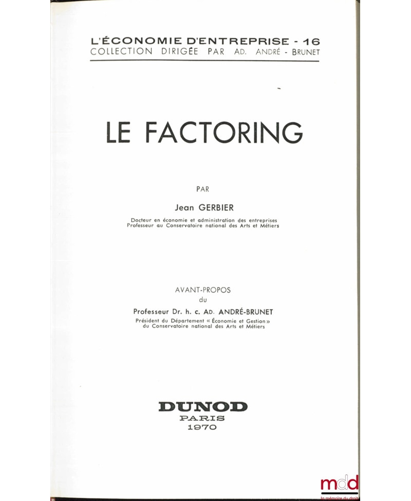 LE FACTORING, avant-propos de Ad. André-Brunet, coll. L’Économie d’entreprise, t. 16