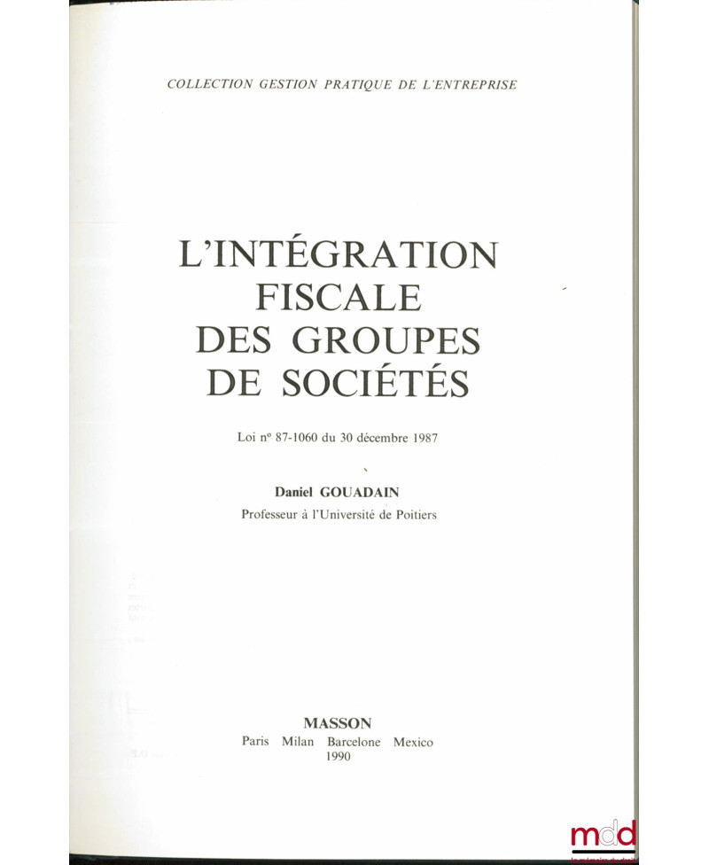L’INTÉGRATION FISCALE DES GROUPES DE SOCIÉTÉS, Loi n° 87-1060 du 30 décembre 1987, coll. Gestion pratique de l’entreprise