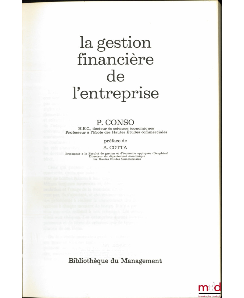 LA GESTION FINANCIÈRE DE L’ENTREPRISE, Préface de A. Cotta, Bibl. du Management, t. 3