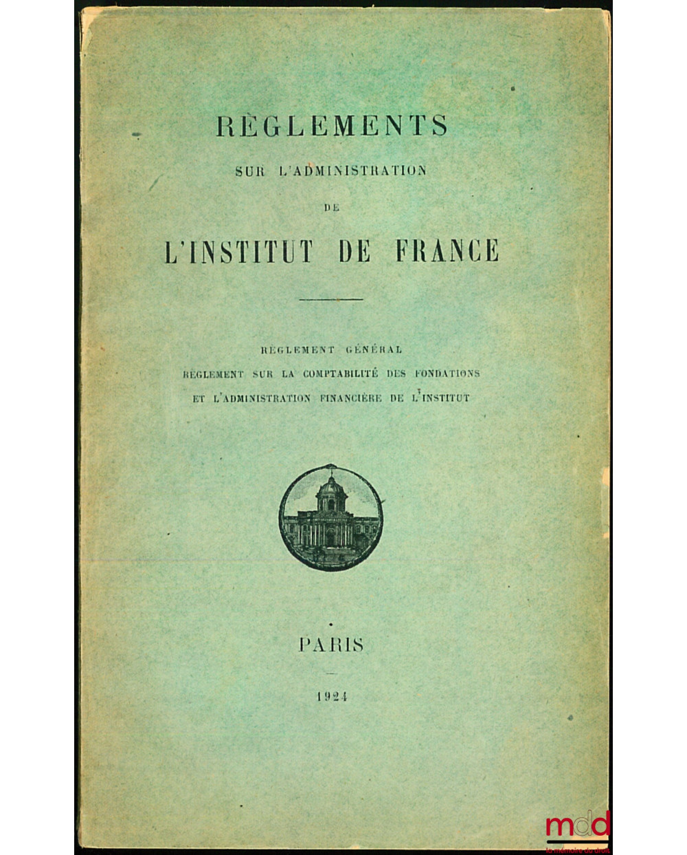 Règlements sur l’administration et l’Institut de France : Règlement général ; Règlement sur la comptabilité des fondations et l’administration financière de l’Institut