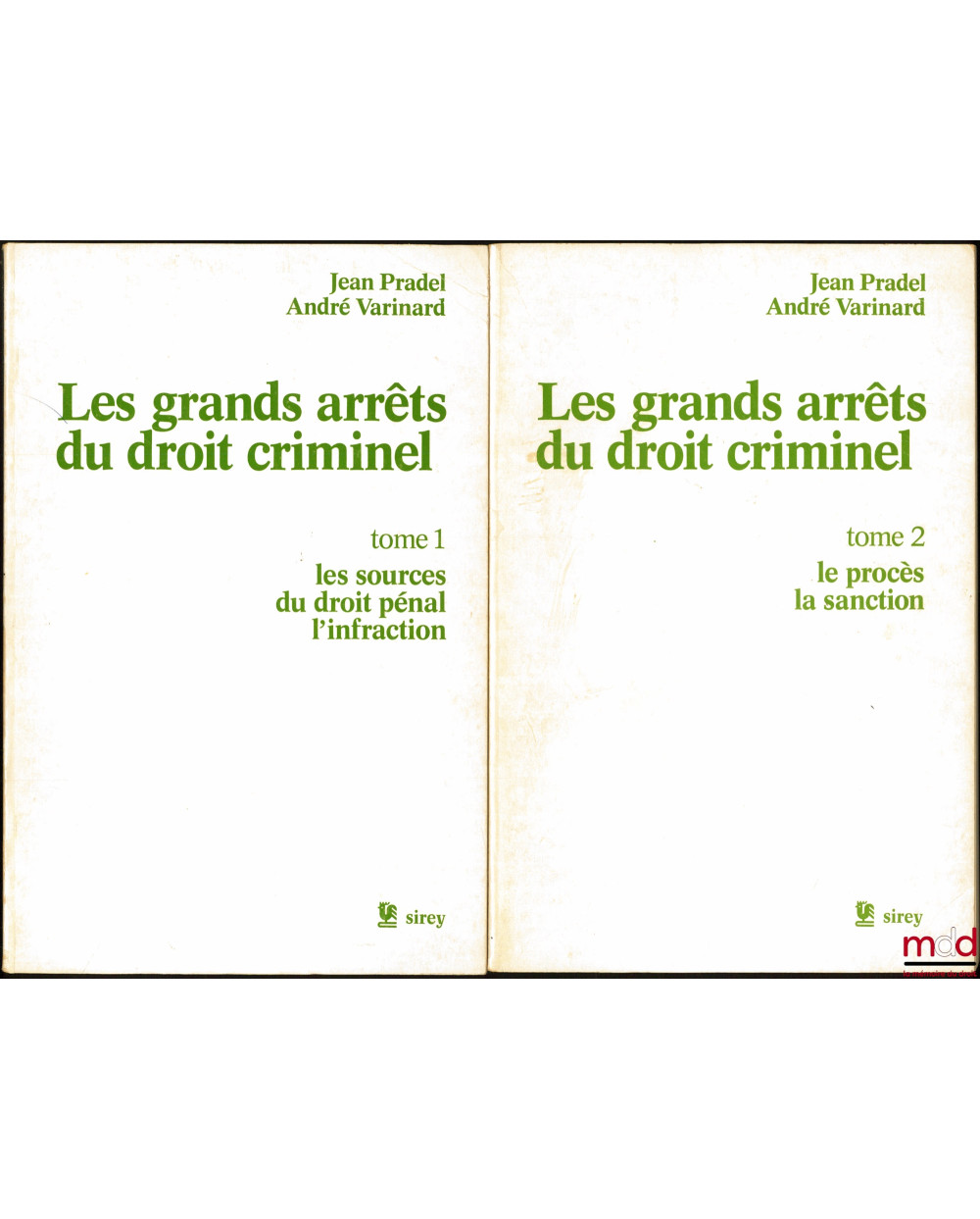 LES GRANDS ARRÊTS DU DROIT CRIMINEL, t. 1 : Les sources du droit pénal - L’infraction ; t. 2 : Le procès - La sanction