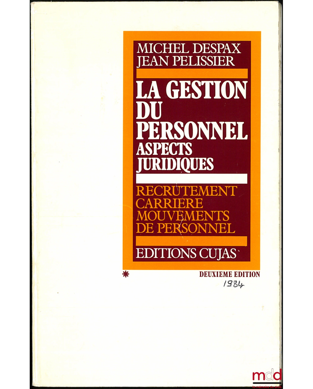 LA GESTION DU PERSONNEL. ASPECTS JURIDIQUES, t. 1 (sur 3) : Recrutement, Carrière, Mouvements de personnel : Politique de Recrutement - Choix du type de contrat - Élaboration du contrat - Responsabilité en matière de recrutement - Problèmes particuliers au recrutement - Acquisition d’une qualification professionnelle - Reconnaissance de la qualification professionnelle et affectation à un poste de travail - Le déroulement normal de la carrière - Les incidents de carrière - Les mouvements du personnel - Les mutations - La démission - Le licenciement pour motif personnel - Les droits du salarié licencié