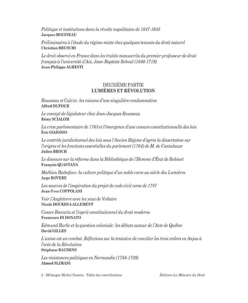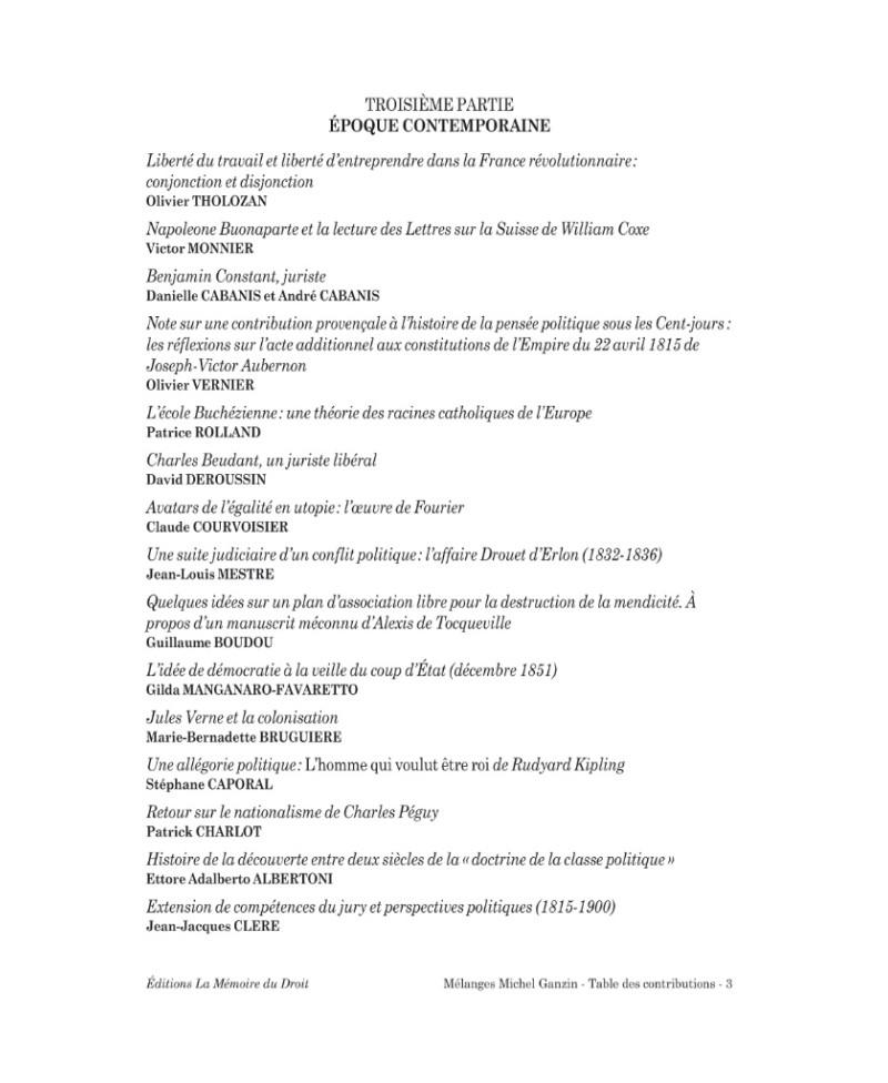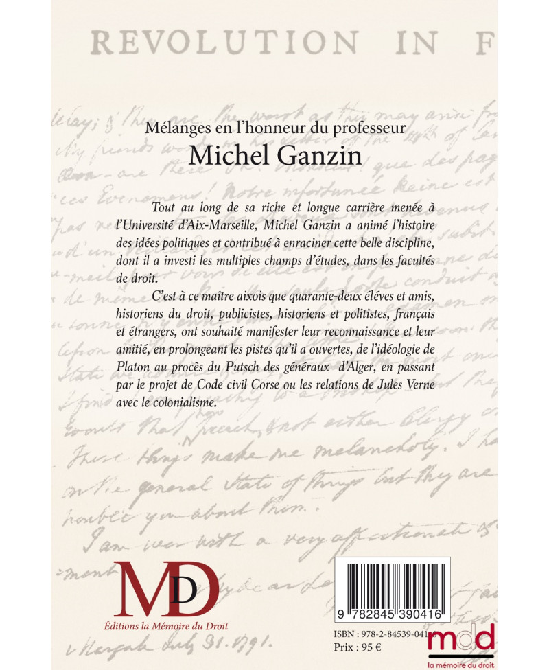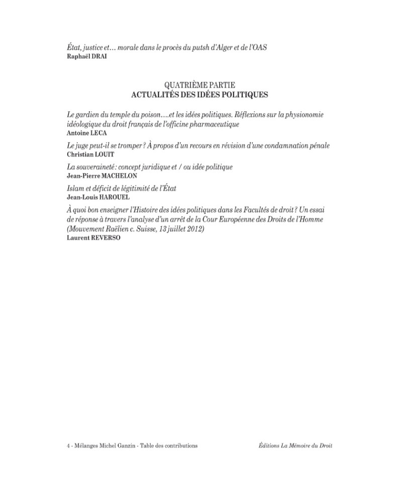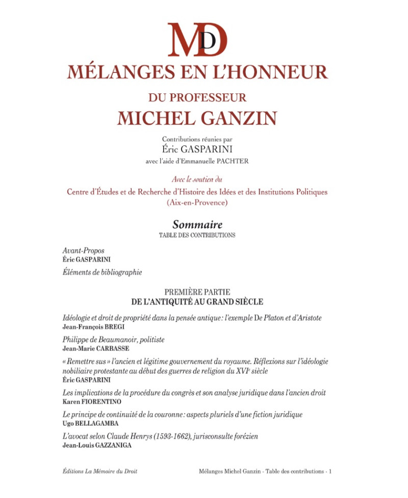 MÉLANGES EN L’HONNEUR DU PROFESSEUR MICHEL GANZINContributions réunies par Éric GASPARINI & François QUASTANA (avec l’aide de Emmanuel Pachter) Avec le soutien du Centre d’Études et de Recherche d’Histoire des Idées et des Institutions Politiques (Aix-en-Provence)