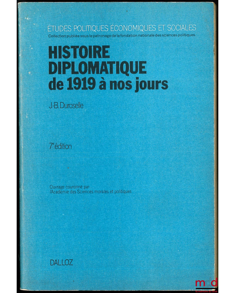 HISTOIRE DIPLOMATIQUE DE 1919 À NOS JOURS, 7ème éd. révisée et prolongée jusqu’en 1978, coll. Études Politiques, Économiques et Sociales