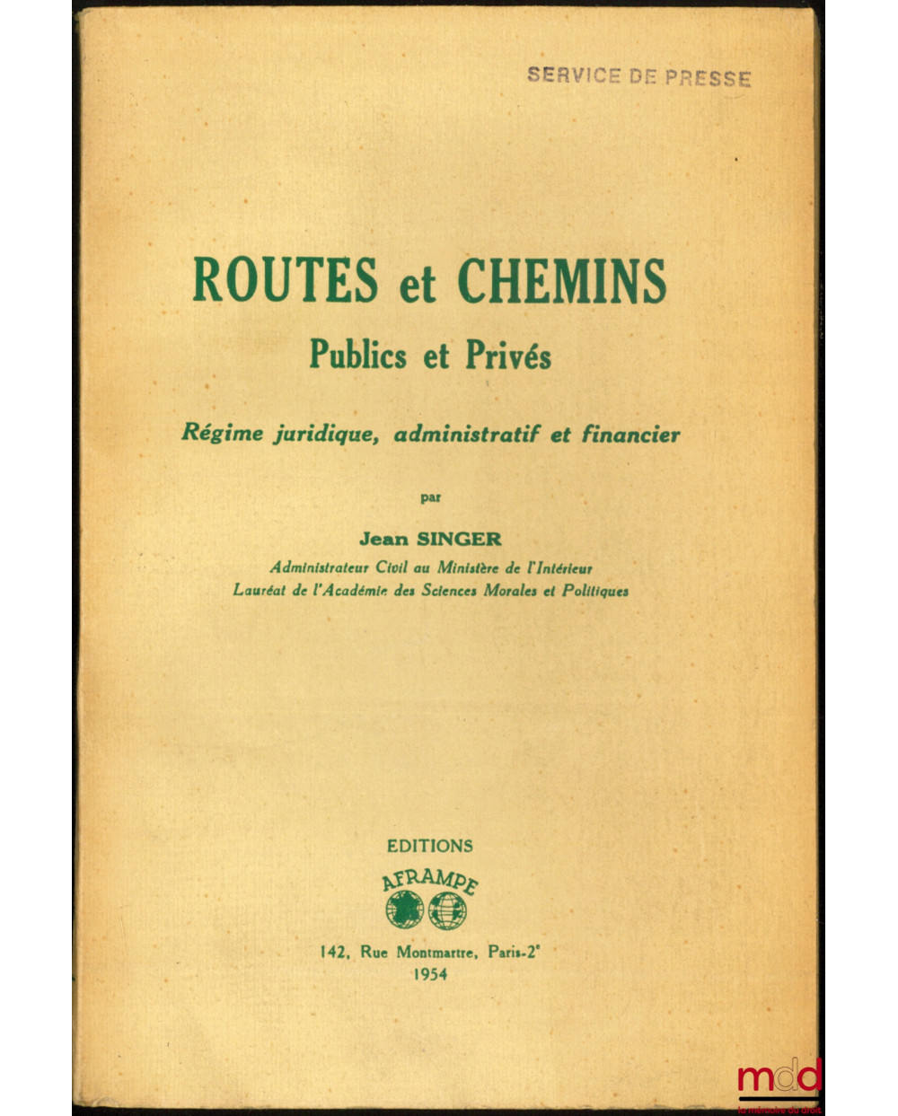 ROUTES ET CHEMINS PUBLICS ET PRIVÉS, Régime Juridique, Administratif et Financier