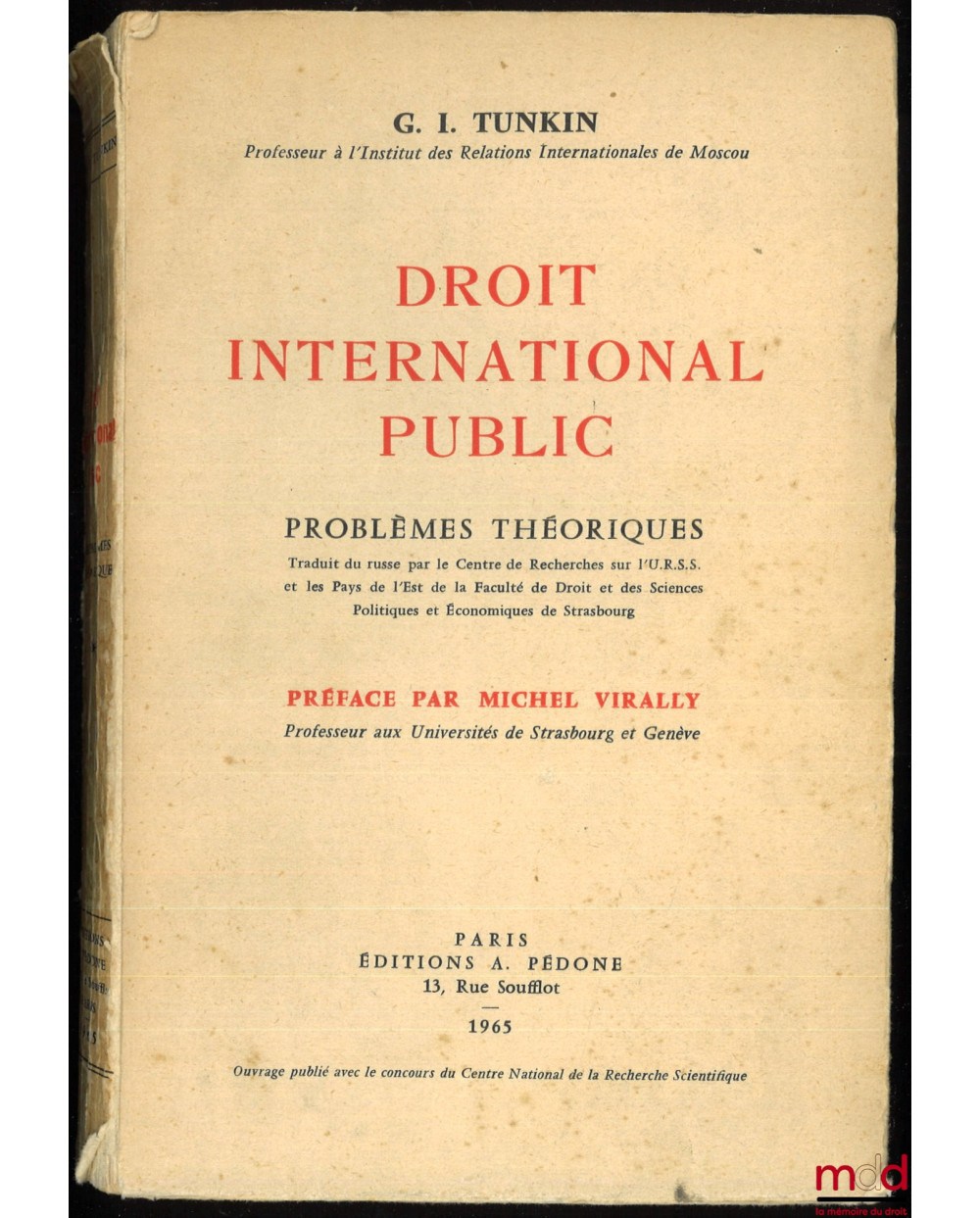 DROIT INTERNATIONAL PUBLIC, PROBLÈMES THÉORIQUES, traduit du russe par le Centre de Recherches sur l’U.R.S.S. et les Pays de l’Est de la Faculté de Droit et des Sciences Politiques et Économiques de Strasbourg, Préface de Michel Virally