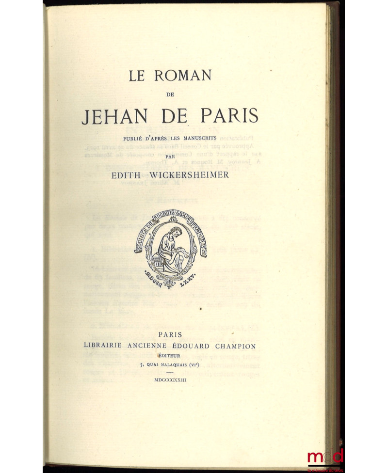 LE ROMAN DE JEHAN DE PARIS publié d’après les manuscrits, Société des anciens textes français