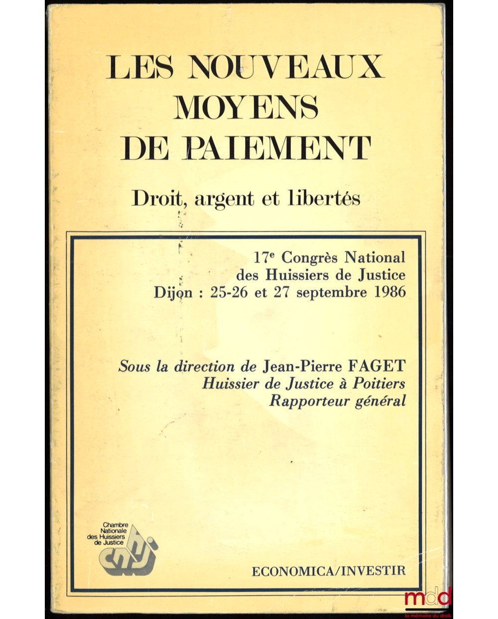 LES NOUVEAUX MOYENS DE PAIEMENT. DROIT, ARGENT ET LIBERTÉS, 17e Congrès national des Huissiers de Justice à Dijon les 25 et 26 septembre 1986, direction J.-P. FAGET
