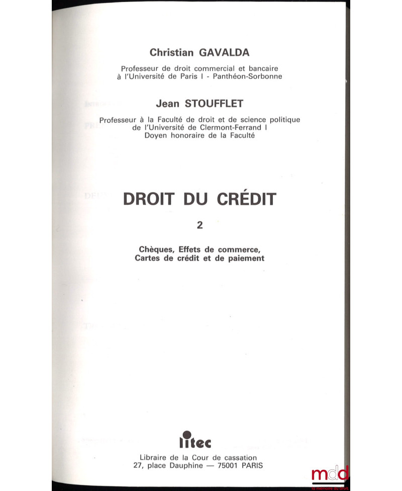DROIT DU CRÉDIT, t. II : EFFETS DE COMMERCE - CHÈQUES - CARTE DE CRÉDIT ET DE PAIEMENT