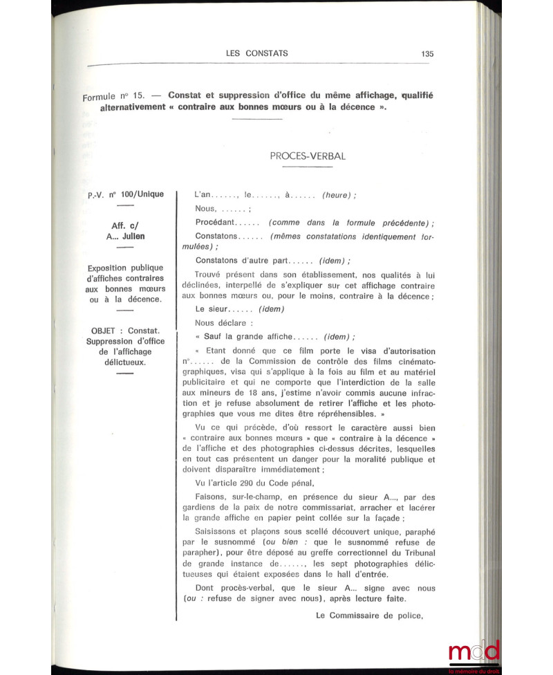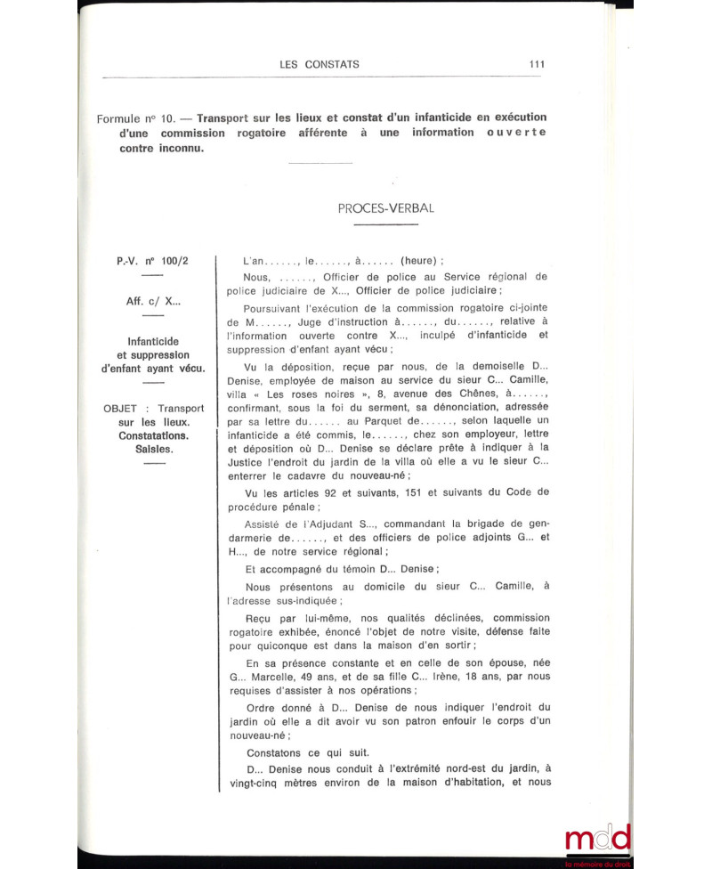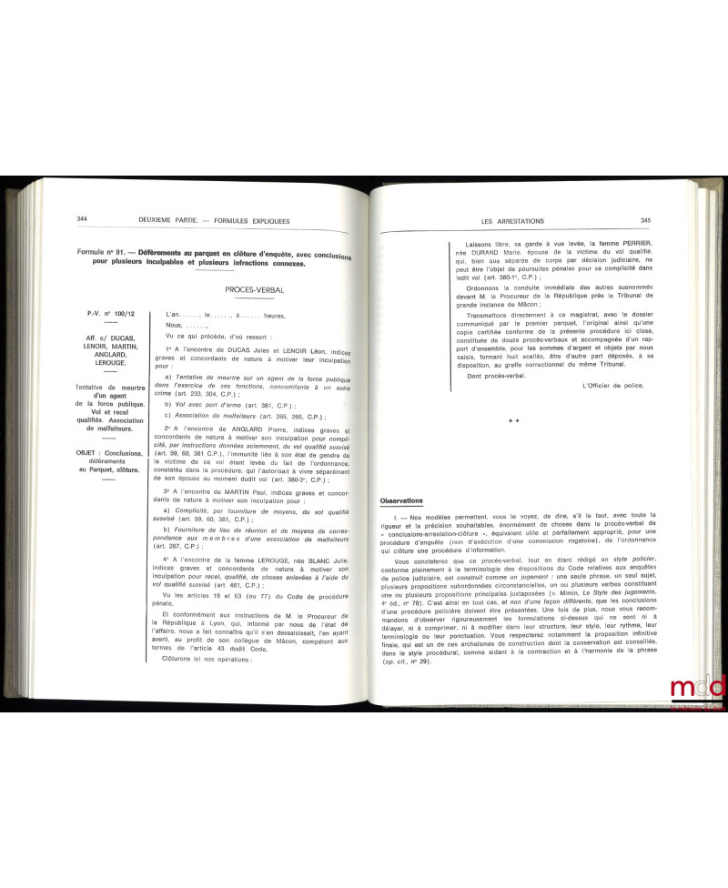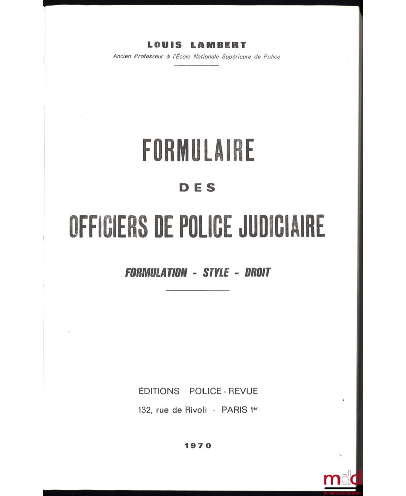 FORMULAIRE DES OFFICIERS DE POLICE JUDICIAIRE. Formulation, Style, Droit