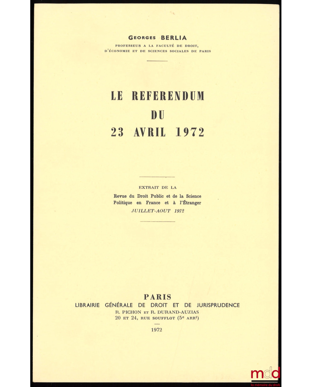 LE RÉFÉRENDUM DU 23 AVRIL 1972, Extrait de la RDP, juillet-août 1972