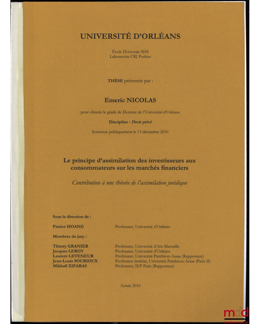 LE PRINCIPE D’ASSIMILATION DES INVESTISSEURS AUX CONSOMMATEURS SUR LES MARCHÉS FINANCIERS. Contribution à une théorie de l’assimilation juridique