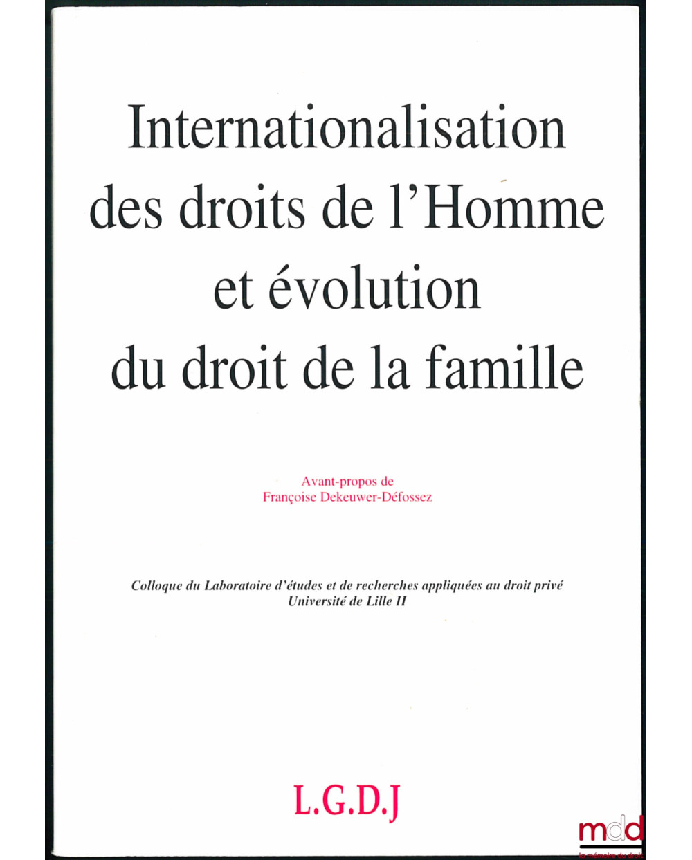 INTERNATIONALISATION DES DROITS DE L’HOMME ET ÉVOLUTION DU DROIT DE LA FAMILLE, Avant-Propos de François Dekeuwer-Défossez, Colloque du Laboratoire d’études et de rech. appliquées au droit privé, Université Lille II