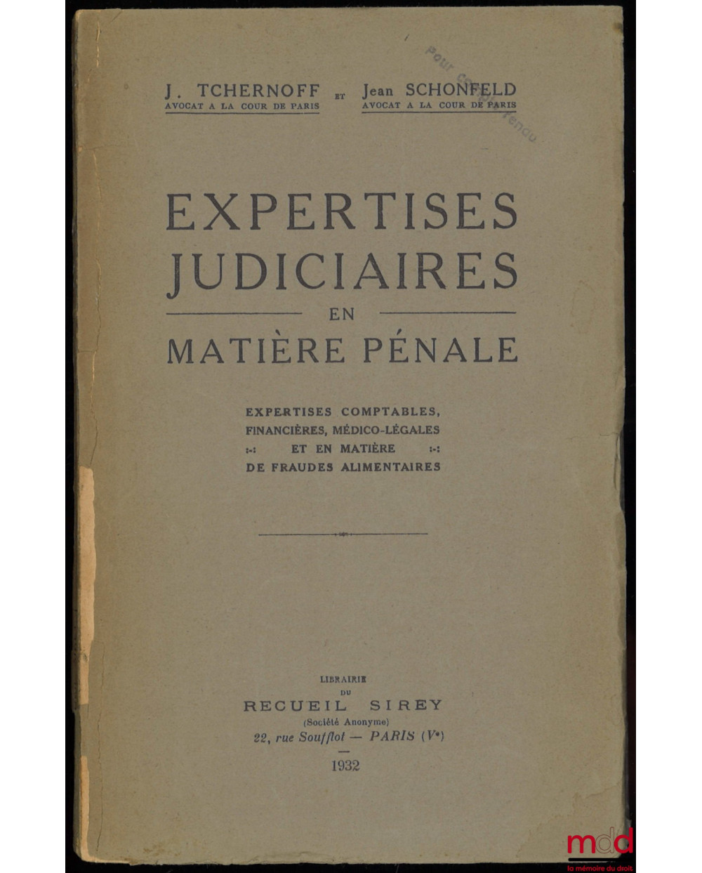 TCHERNOFF (Iouda [francisé Juda]) et SCHONFELD (Jean)