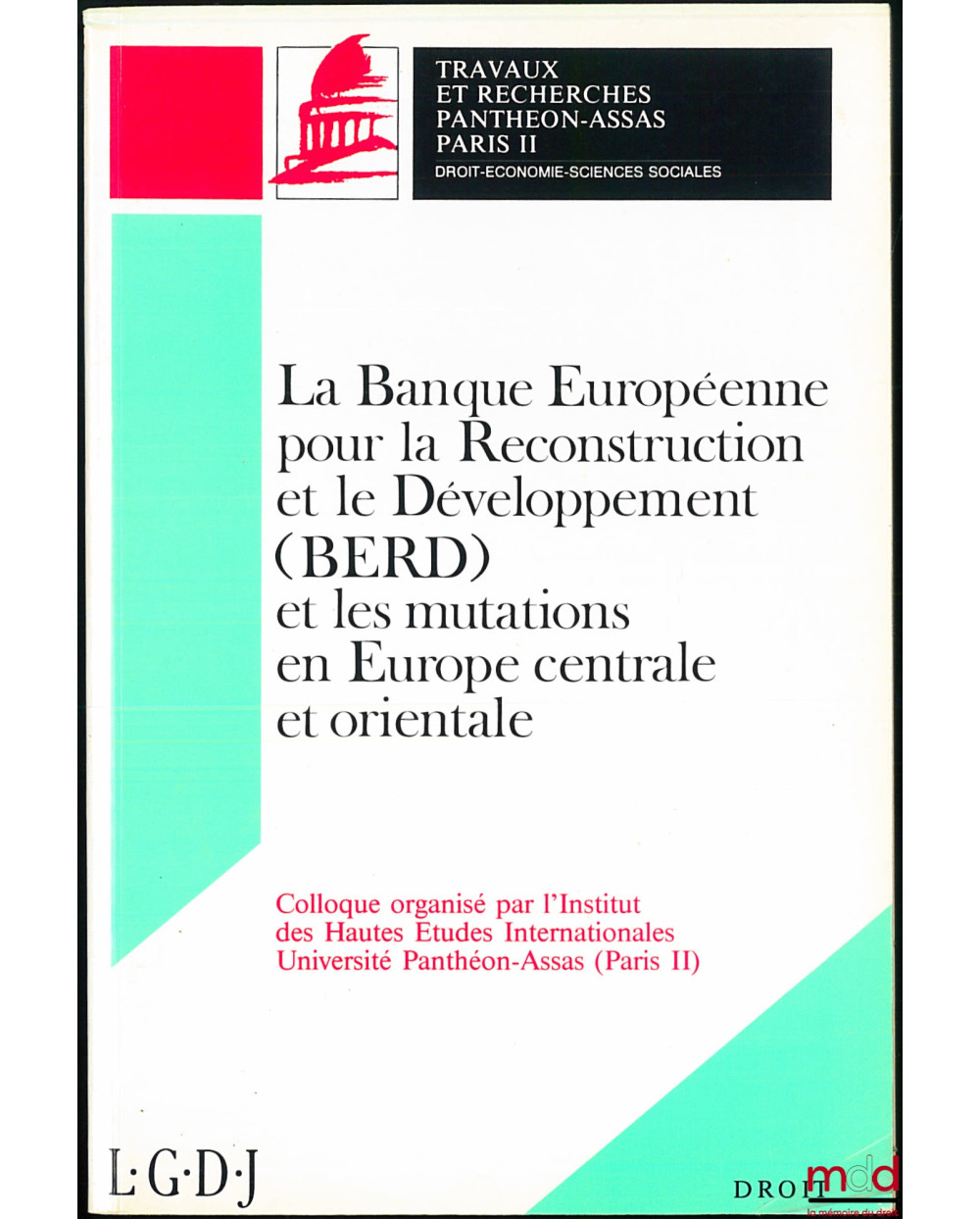 LA BANQUE EUROPÉENNE POUR LA RECONSTRUCTION ET LE DÉVELOPPEMENT (BERD) ET LES MUTATIONS EN EUROPE CENTRALE ET ORIENTALE, colloque organisé par L’Institut des Hautes Études Internationale, Université Panthéon-Assas (Paris II), coll. Travaux et recherches Panthéon-Assas Paris II, Droit, économie, sc. soc.