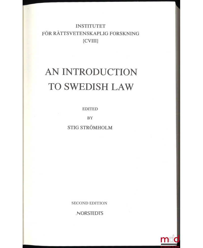 AN INTRODUCTION TO SWEDISH LAW, Second edition, Institutet för Rättsvetenskaplig Forskning (CVIII)