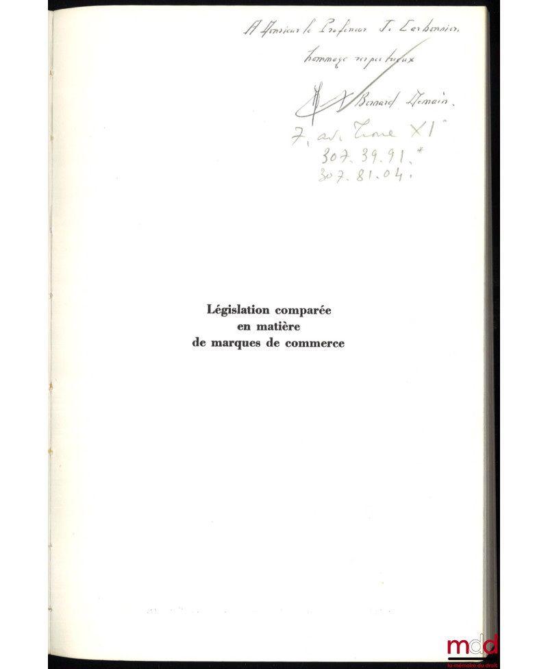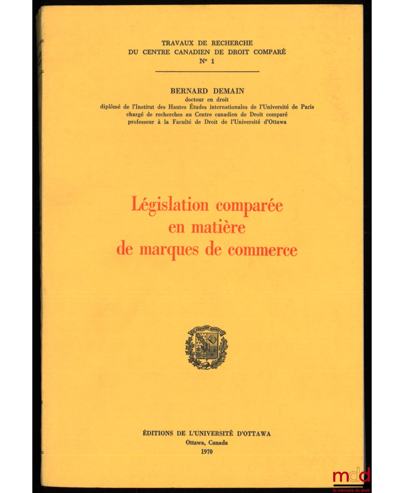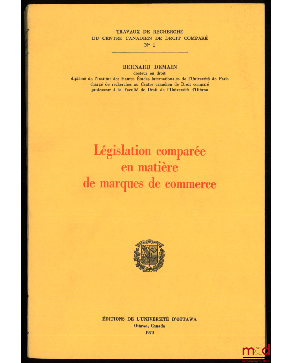 LÉGISLATION COMPARÉE EN MATIÈRE DE MARQUES DE COMMERCE, coll. Travaux de recherche du Centre Canadien de Droit Comparé n° 1