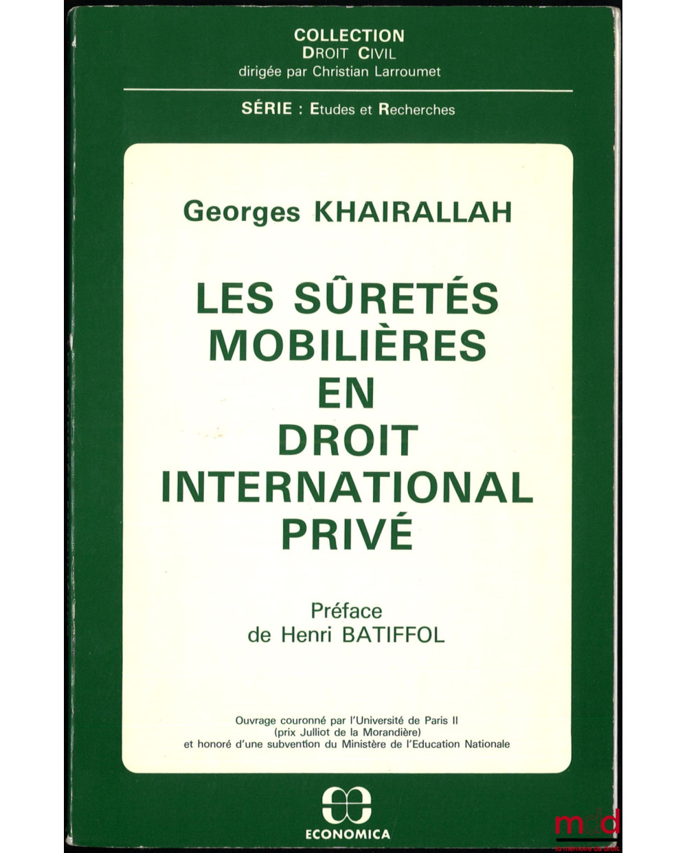 LES SÛRETÉS MOBILIÈRES EN DROIT INTERNATIONAL PRIVÉ, Préface de Henri Batiffol, coll. Droit Civil, série Études et Recherches