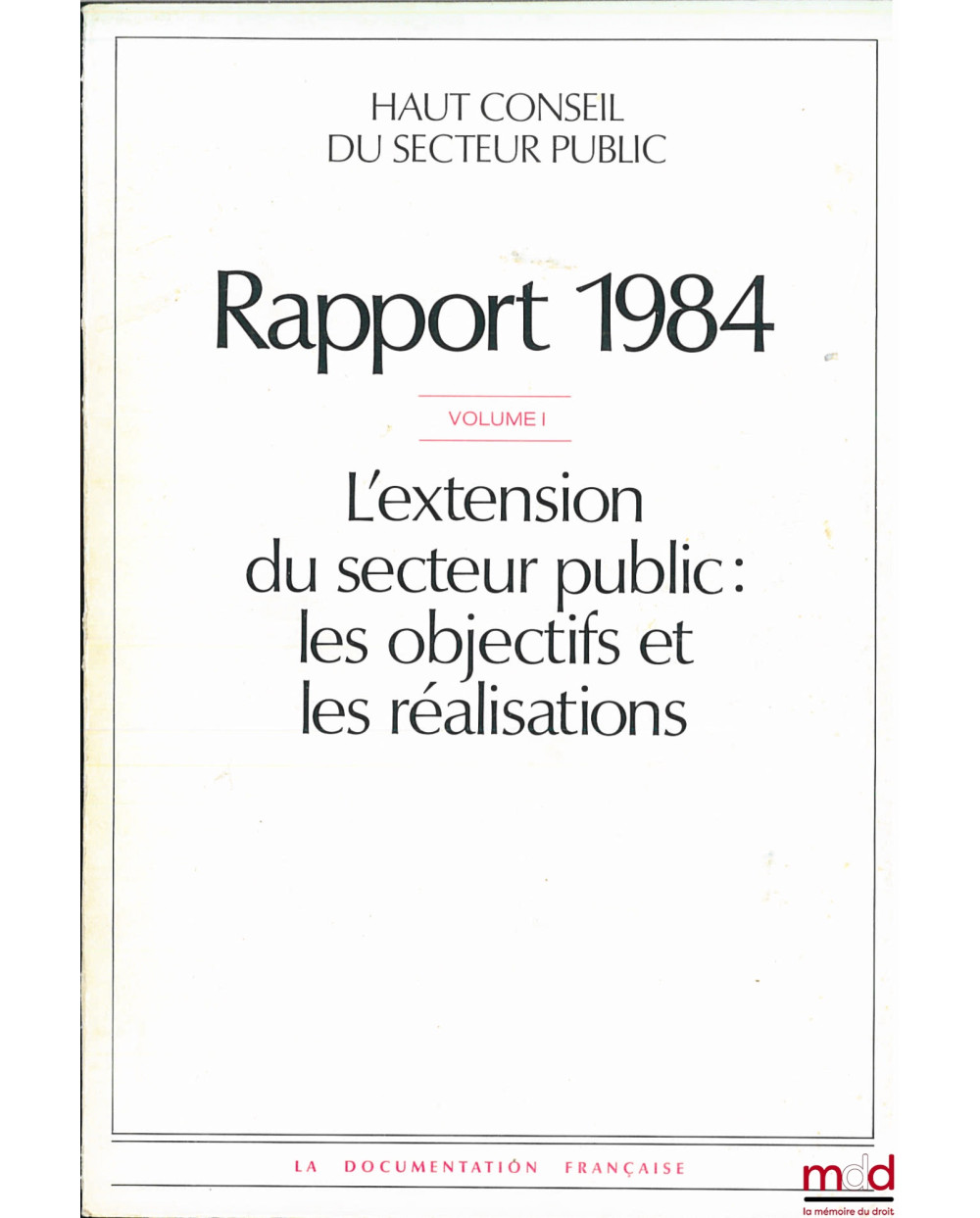 I : L’EXTENSION DU SECTEUR PUBLIC, LES OBJECTIFS ET LES RÉALISATIONS ; II : LA GESTION DU SECTEUR PUBLIC : LE SUIVI DES ACTIVITÉS, RAPPORT 1984
