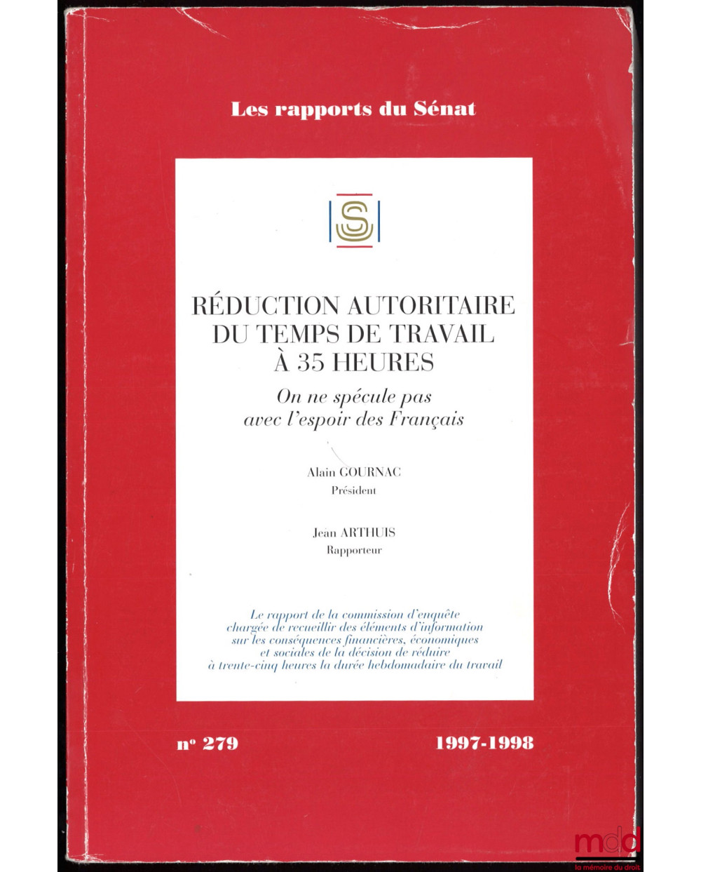 RÉDUCTION AUTORITAIRE DU TEMPS DE TRAVAIL À 35 HEURES, On ne spécule pas avec l’espoir des Français, Président Alain Gournac, Rapporteur Jean Arthuis, coll. Les rapports du Sénat, 1997-1998, n° 279