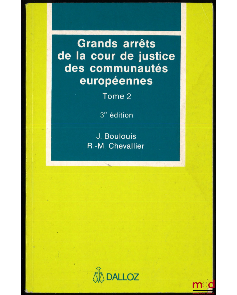 GRANDS ARRÊTS DE LA COUR DE JUSTICE DES COMMUNAUTÉS EUROPÉENNES, t. 2 : Libre circulation des marchandises… - Concurrence - Dispositions fiscales - Agriculture - Transport - Politiques économique, commerciale, sociale, 3e éd.