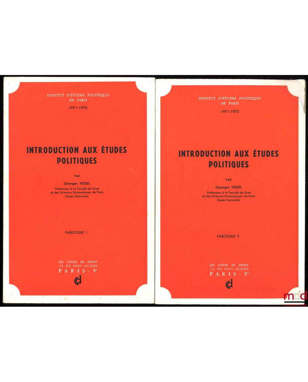 INTRODUCTION AUX ÉTUDES POLITIQUES, cours professés à l’Institut d’études politiques de Paris en 1971-1972, Fascicules I et II [mq. fasc. III]
