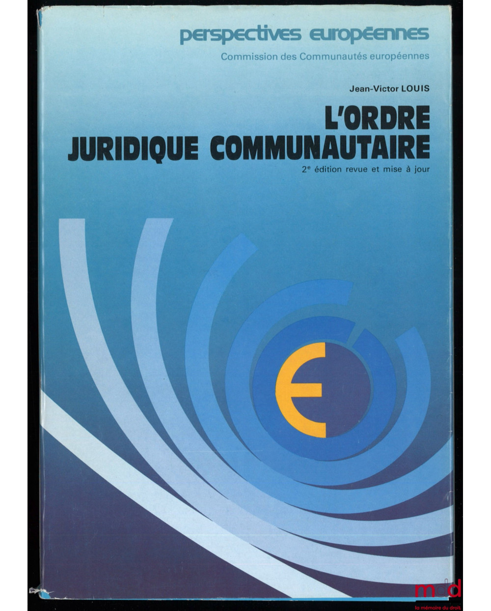 L’ORDRE JURIDIQUE COMMUNAUTAIRE, 2e éd. revue et mise à jour, coll. Perspectives européennes, Commission des Communautés européennes