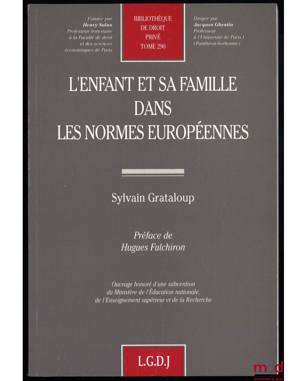 L’ENFANT ET SA FAMILLE DANS LES NORMES EUROPÉENNES, Préface de Hugues Fulchiron, Bibl. de droit privé, t. 290