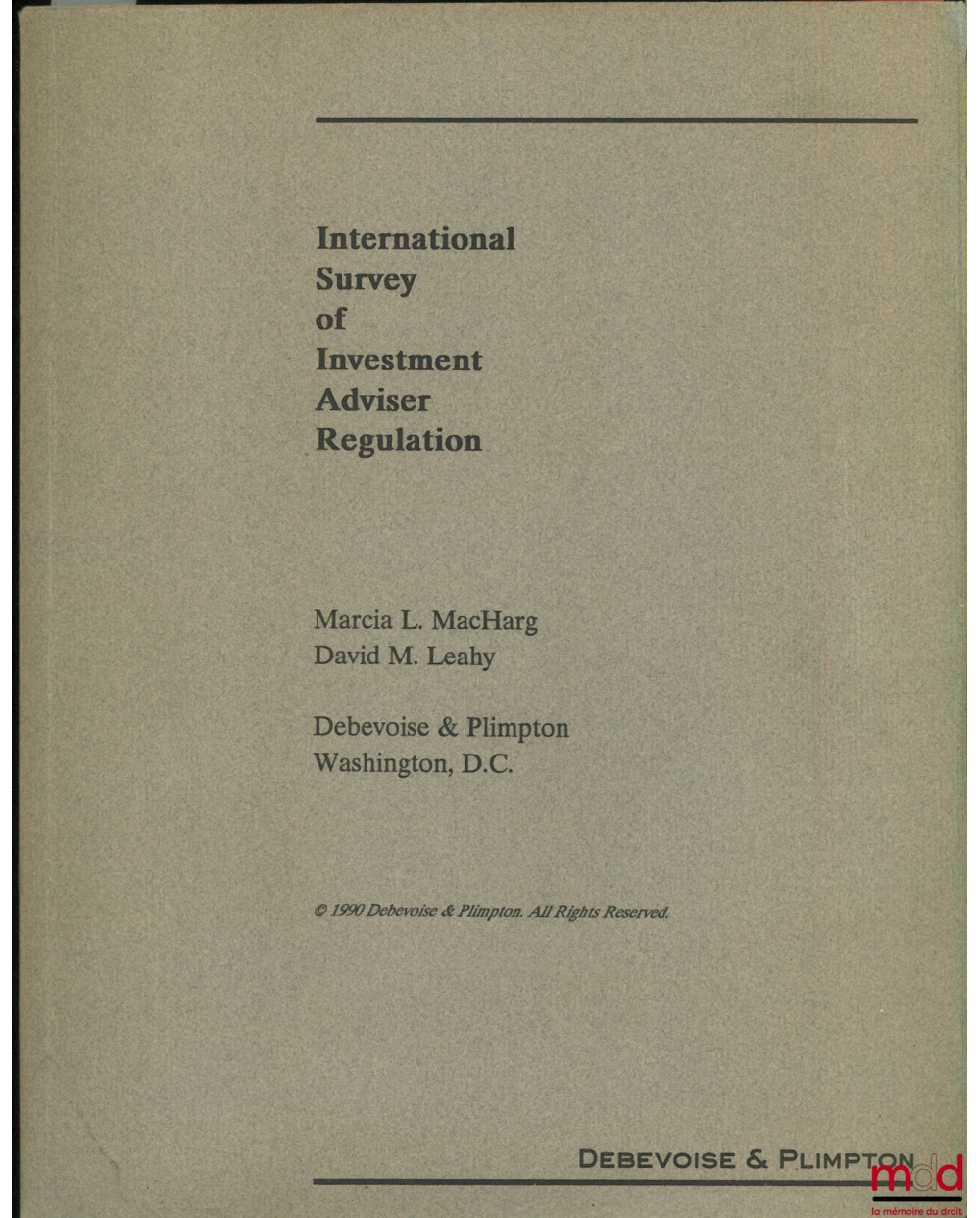 INTERNATIONAL SURVEY OF INVESTMENT ADVISER REGULATION