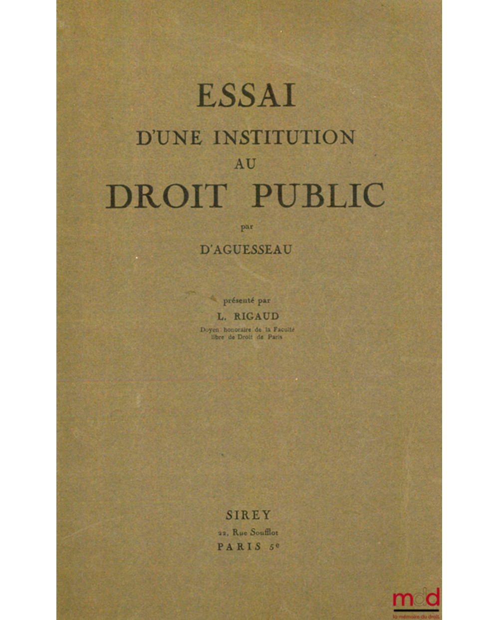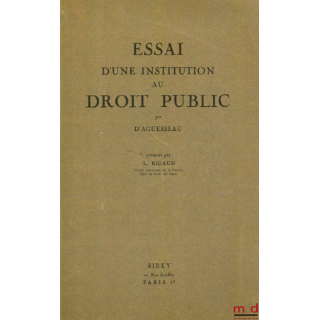 ESSAI D’UNE INSTITUTION AU DROIT PUBLIC RÉÉDITÉ COMME INTRODUCTION FONDAMENTALE AUX ÉTUDES JURIDIQUES PAR L. RIGAUD