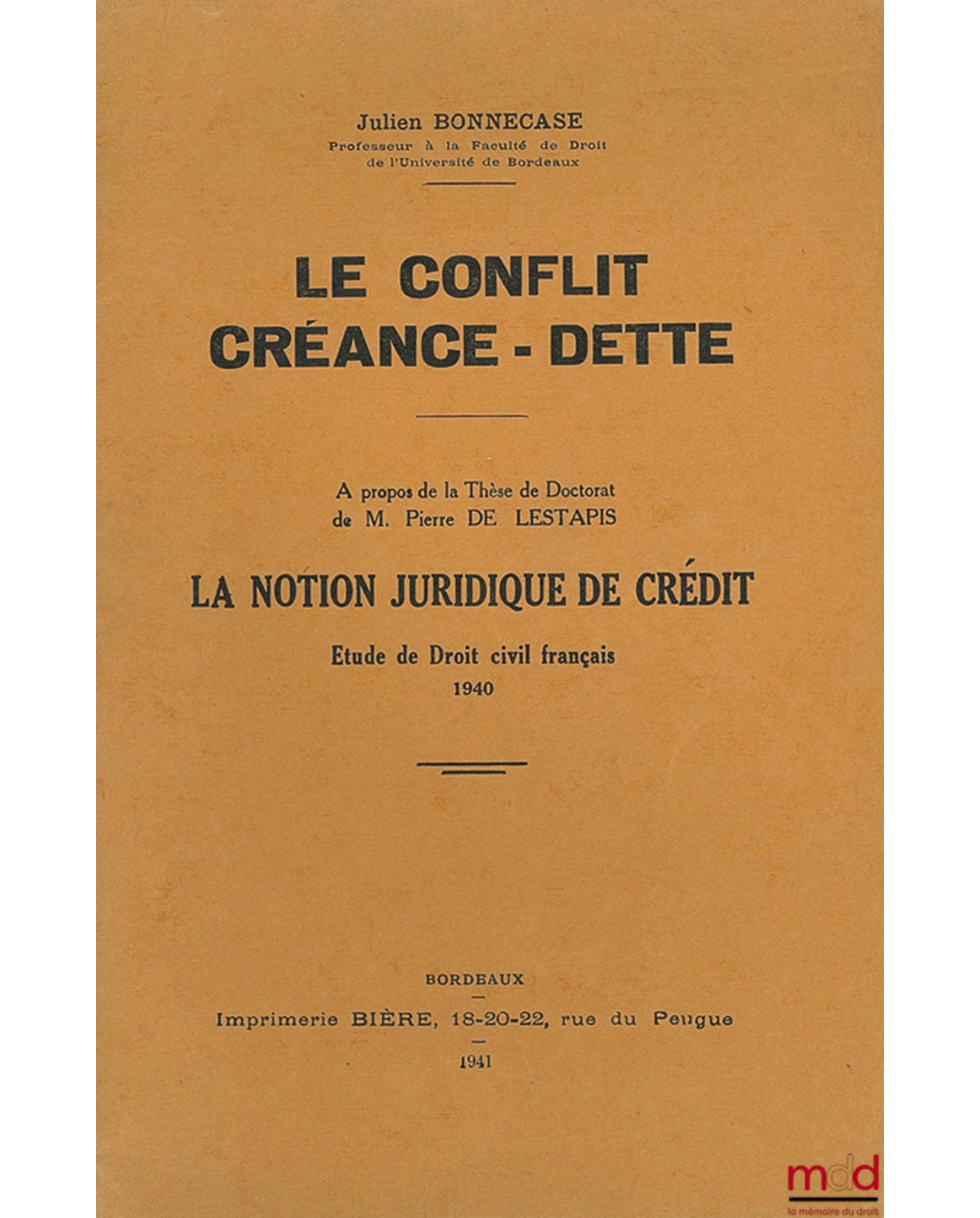ÉTUDE COMPARÉE DE LA RESPONSABILITÉ DÉLICTUELLE EN DROIT PRIVÉ ET EN DROIT PUBLIC (thèse 1951), Préface de André AMIAUD, Collection de la Faculté...
