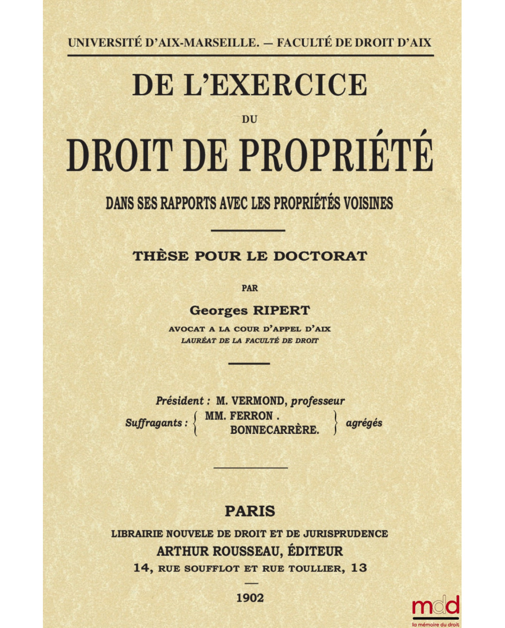 DE L’EXERCICE DU DROIT DE PROPRIÉTÉ DANS SES RAPPORTS AVEC LES PROPRIÉTÉ VOISINES, thèse