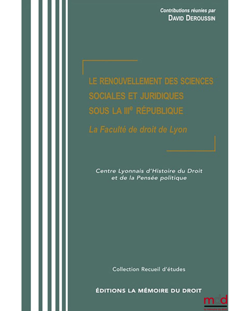 LE RENOUVELLEMENT DES SCIENCES SOCIALES ET JURIDIQUES SOUS LA IIIe RÉPUBLIQUE, La Faculté de droit de Lyon, Contributions réunies par David DEROUSSIN, avec le concours du Centre Lyonnais d’Histoire du Droit et de la Pensée Politique, [Actes de colloques]