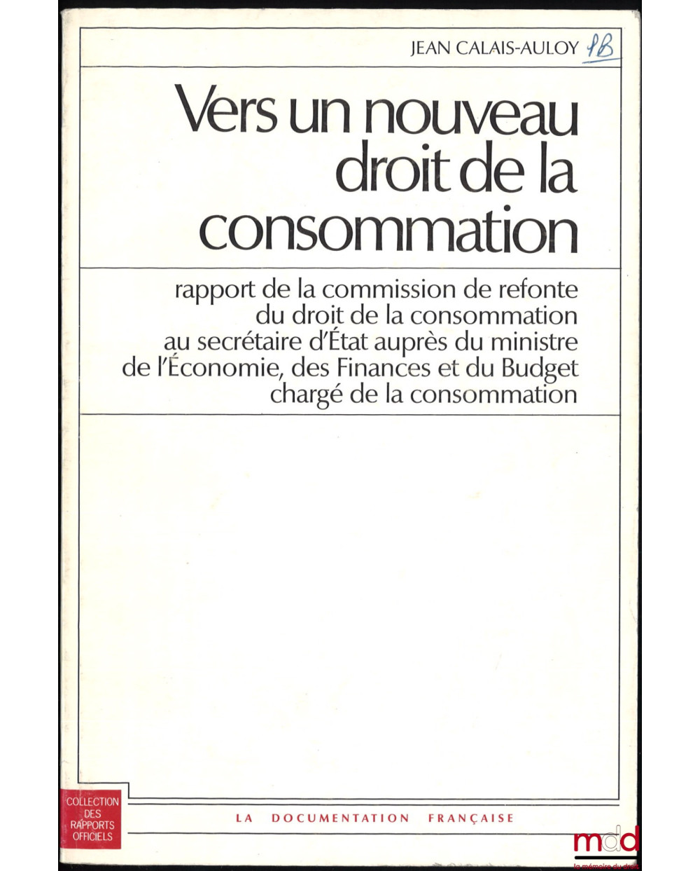 VERS UN NOUVEAU DROIT DE LA CONSOMMATION, Rapport de la commission de la refonte du droit de la consommation au secrétaire d’État auprès du ministre de l’Économie, des Finances et du Budget chargé de la consommation, coll. Rapports officiels