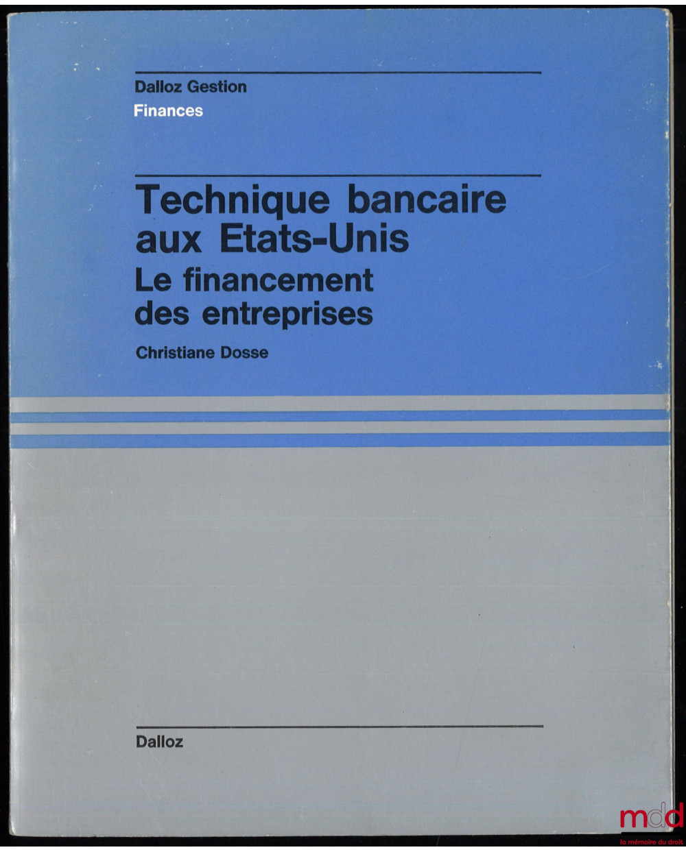 TECHNIQUE BANCAIRE AUX ÉTATS-UNIS, Le financement des entreprises, Préface de Raoul Crespin, coll. Dalloz Gestion - Finances