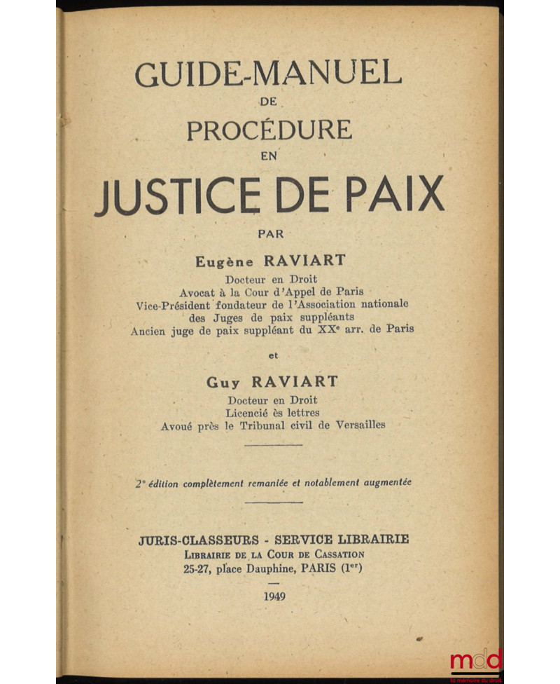 GUIDE-MANUEL DE PROCÉDURE EN JUSTICE DE PAIX, 2e éd. complètement remaniée et notablement augmentée