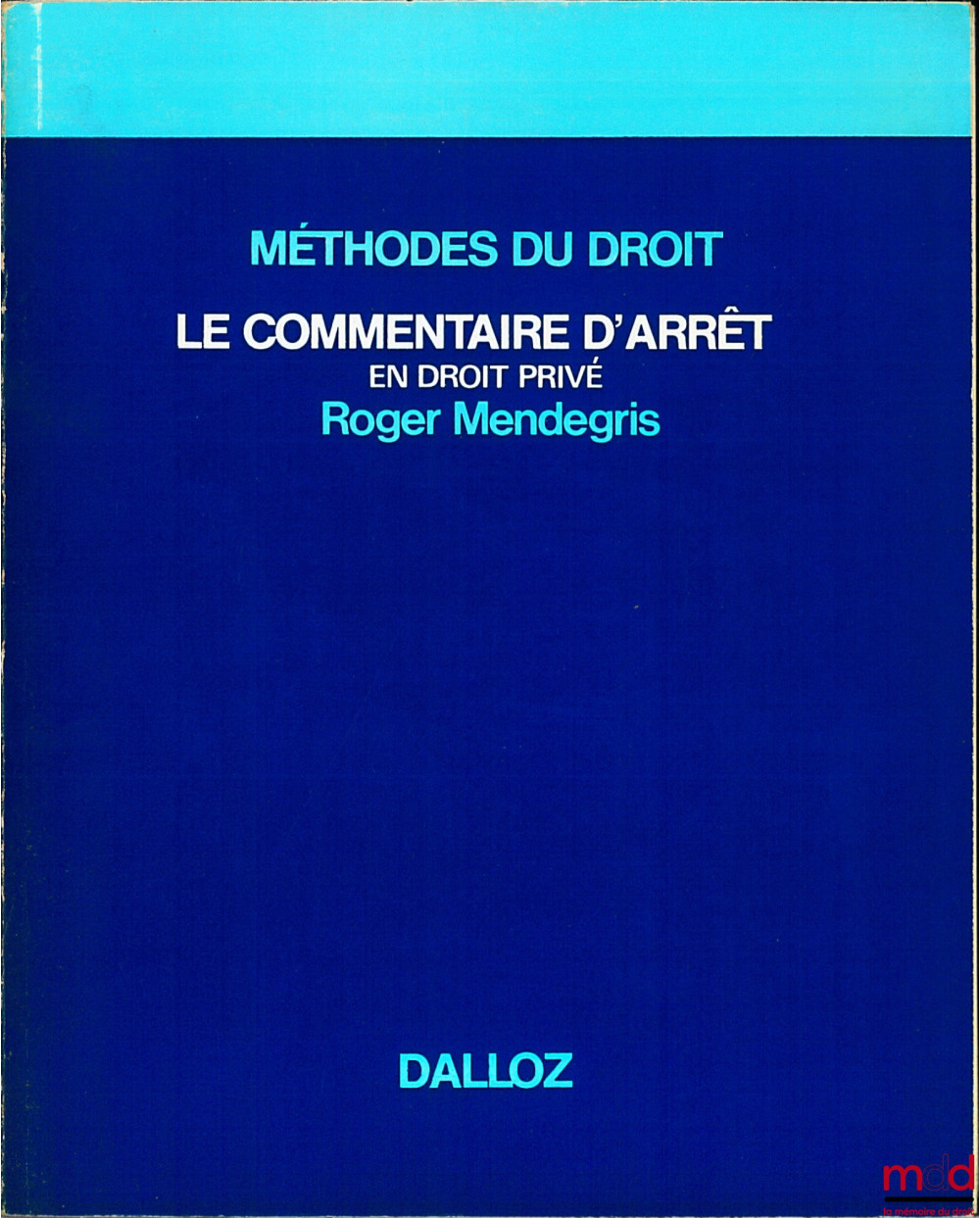 LE COMMENTAIRE D’ARRÊT EN DROIT PRIVÉ, coll. Méthodes du droit