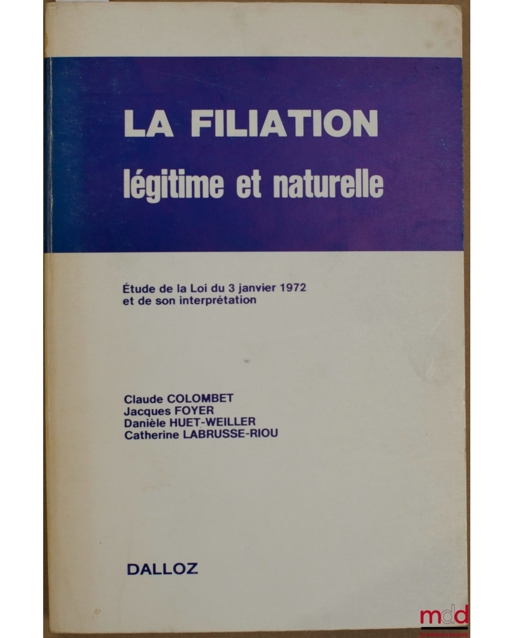 LA FILIATION LÉGITIME ET NATURELLE, Étude de la Loi du 3 janvier 1972 et de son interprétation