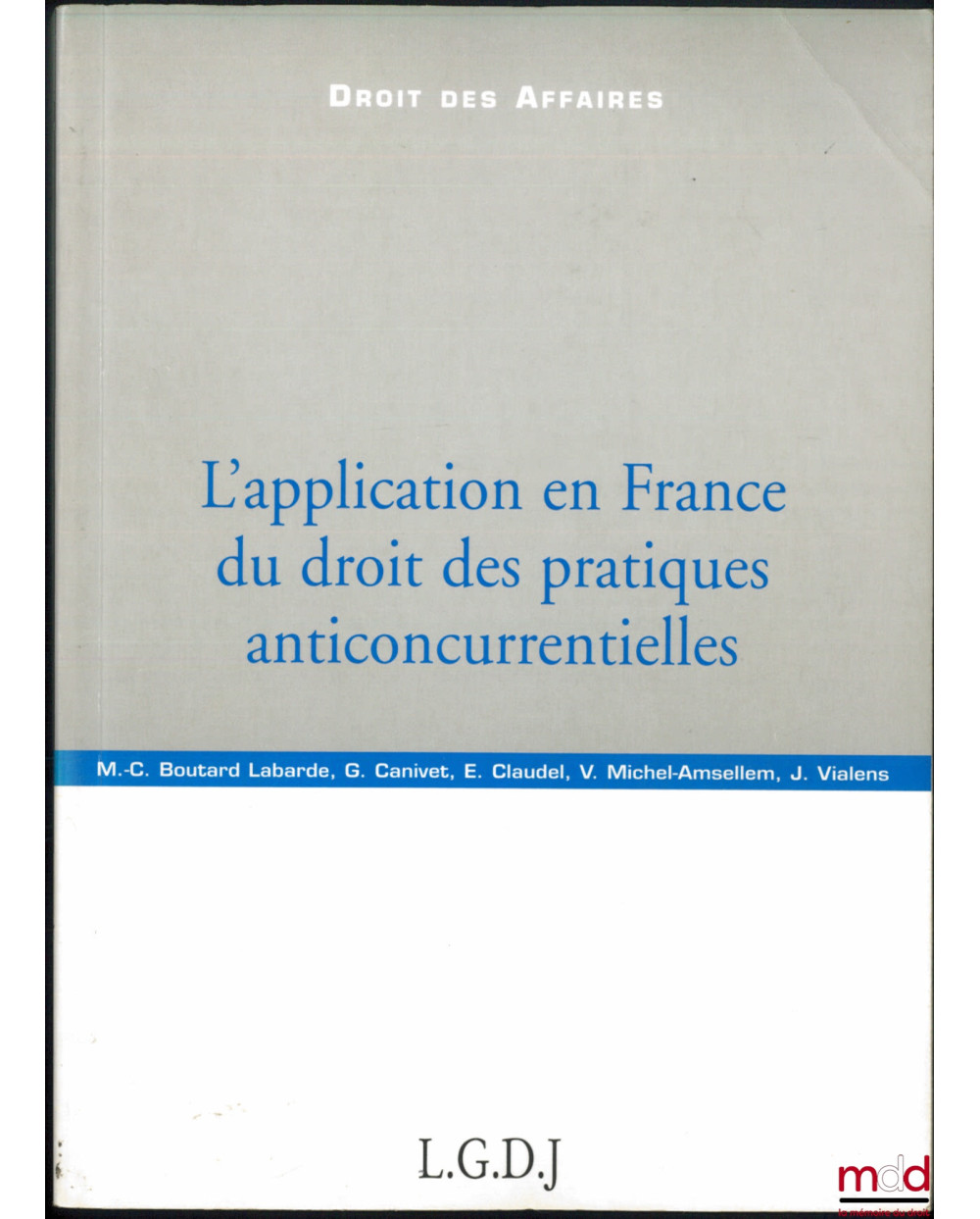 L’APPLICATION EN FRANCE DU DROIT DES PRATIQUES ANTICONCURRENTIELLES, coll. Droit des affaires