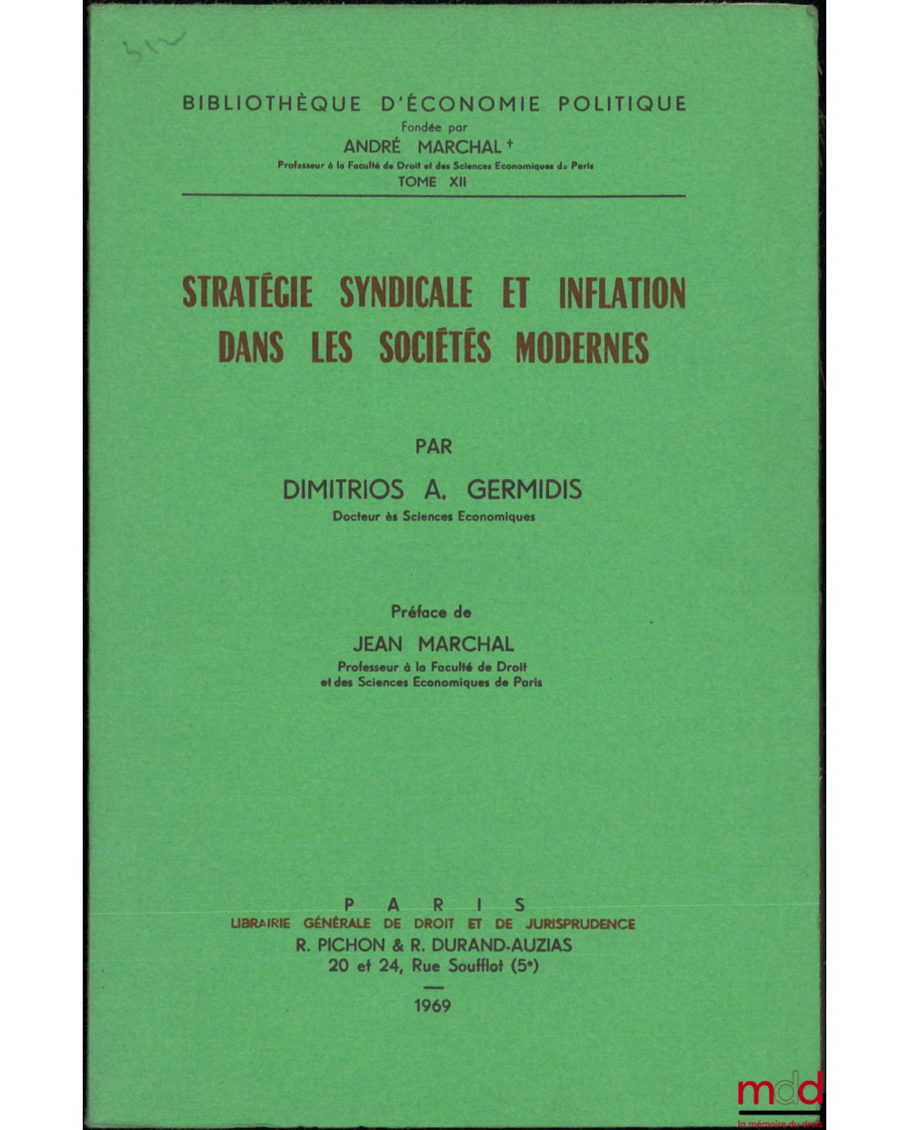 STRATÉGIE SYNDICALE ET INFLATION DANS LES SOCIÉTÉS MODERNES, Préface de Jean Marchal, Bibl. d’économie politique, t. XII